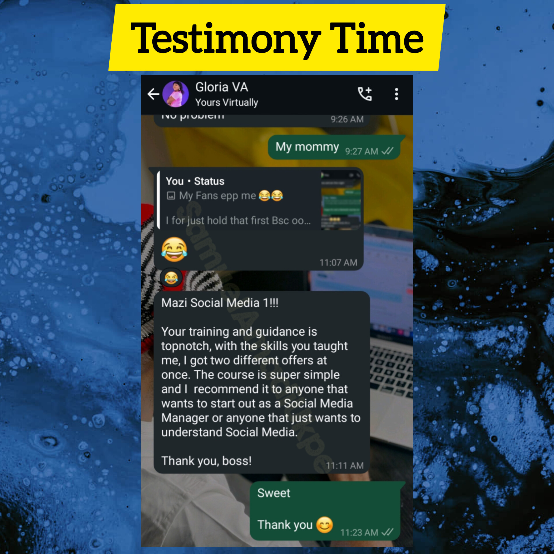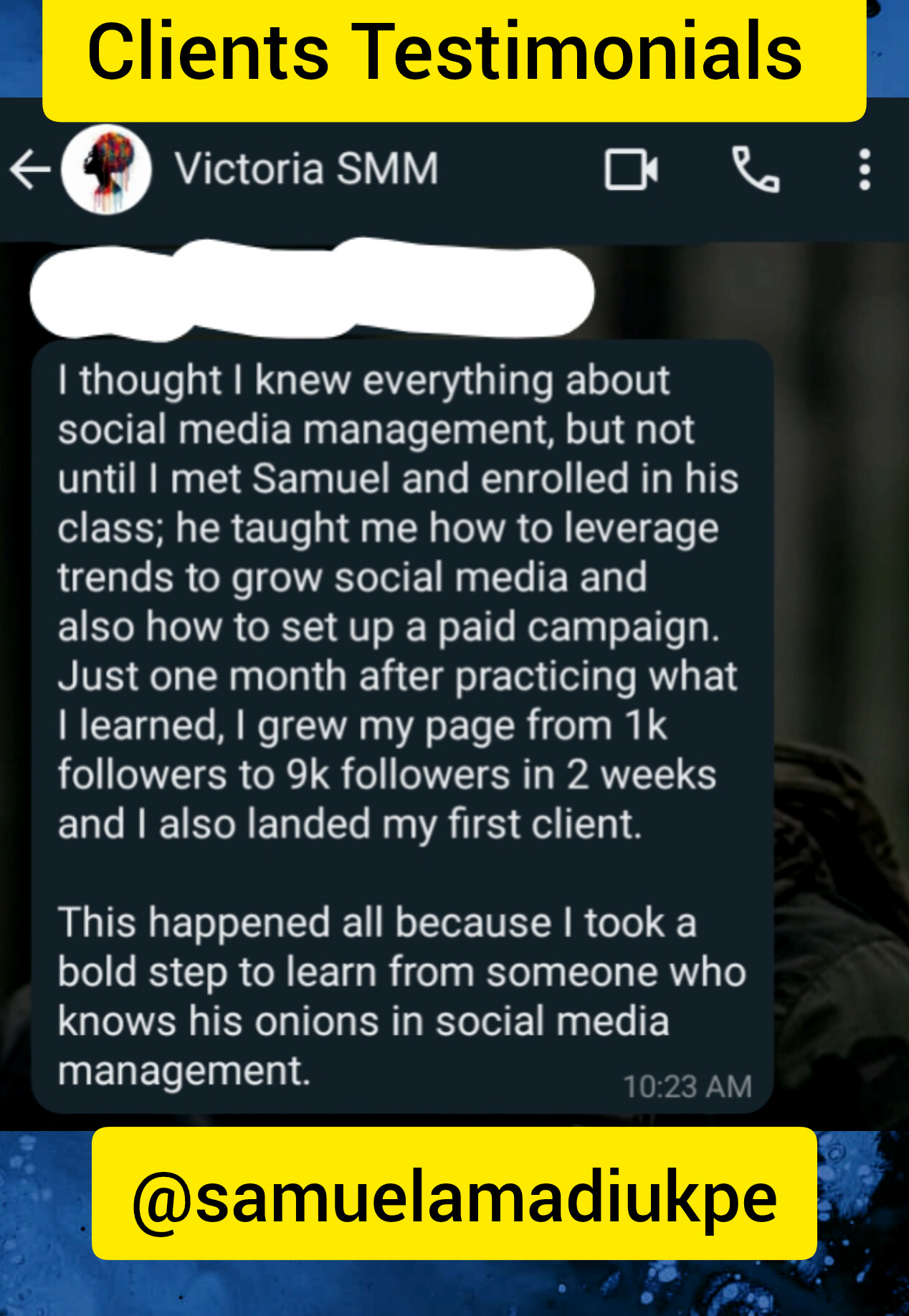 I'm considered one of the Speedily-Rising-Star Social Media Manager, having generated over ₦9 Million as a Personal Brand and Over ₦17 Million as a Cooperate Brand (One Media Jungle) in the past last 6 months.