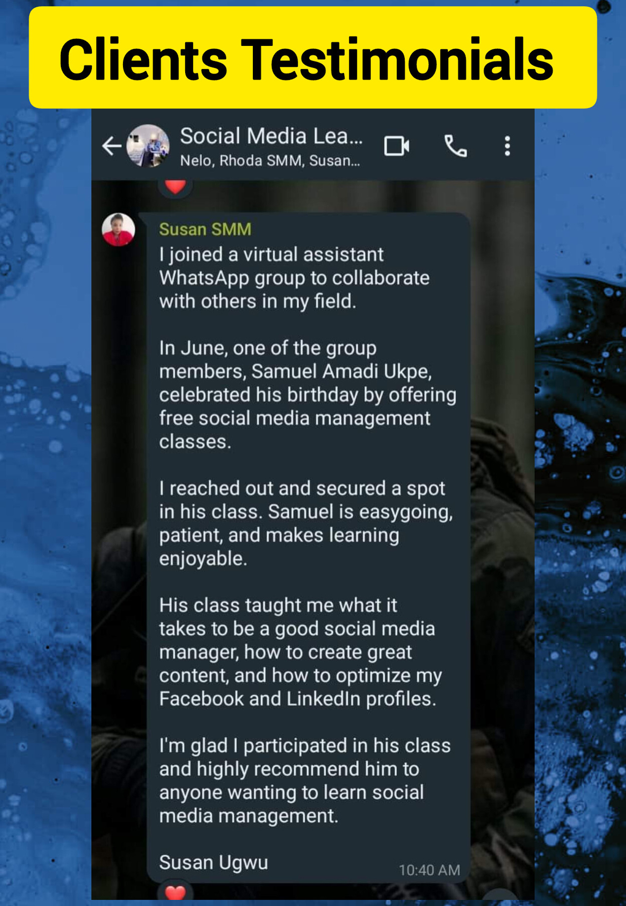 I tried my best to learn everything I could about social media management and client acquisition.